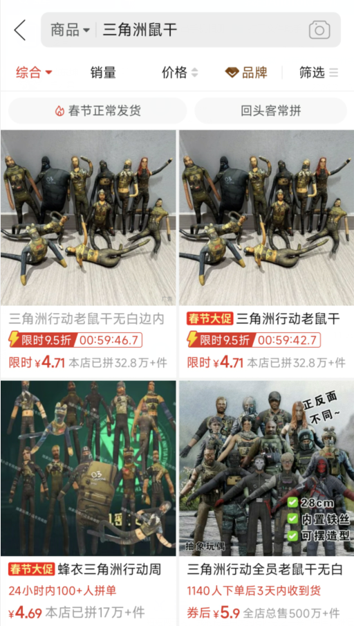 ……何意味啊?怎么从Q版萌娃变I版老鼠干了?玩儿的这么抽象的吗?姬看到老鼠干的时候整个人愣了一下,随后噗嗤一下笑了出来。很多姬友或许觉得这种抽象娃娃真的有人会要吗?有,而且不少,拼多多的销量说明一切。