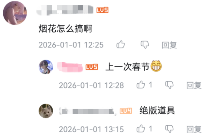 无论是联动动作还是烟花,都让玩家感受到游戏中居然有温情的存在(总算不都是剥蒜的情谊了...),从评论区互动可以看出,玩家间的气氛还是很不错的。
