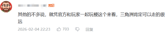无论线上还是线下,《三角洲行动》和玩家的奔现都是非常成功的,官方宠玩家,玩家爱游戏,双方自然可以走得长远。如今,《三角洲行动》不光只是游戏那么简单,它更像是玩家的朋友:这里的营销不是单向的轰炸,而是玩家抛梗,官方接梗。正是这种平视、尊重、有爱的双向互动,让《三角洲行动》超越了一款游戏,成为了玩家在春节期间温暖的情感港湾。在这个春节,《三角洲行动》证明了:技术决定游戏的下限,而真正懂玩家决定了游戏的上限。