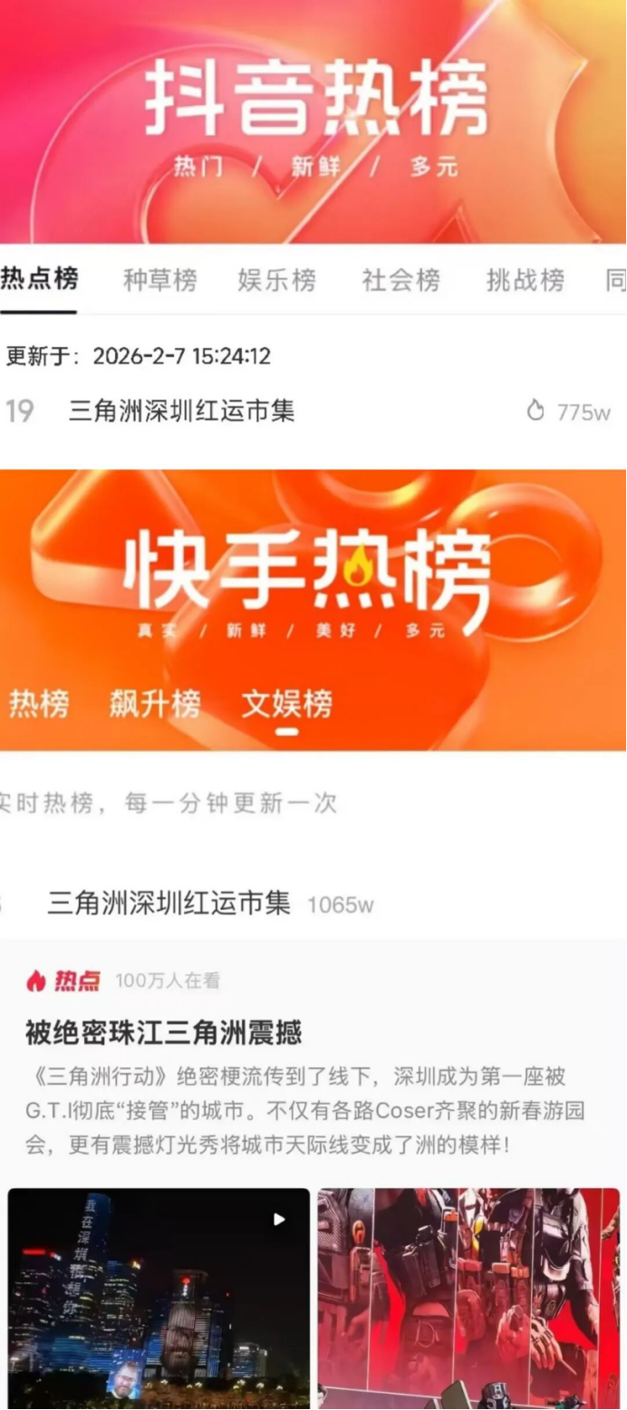 而在老家深圳,官方更是开启了“深度联动”,直接来了一场大型灯光秀。当晚,“天空属于哈夫克”、老太那张和善的脸、乌鲁鲁等玩家熟悉的元素和人物,映在了深圳市民中心、平安金融中心等43栋地标建筑上。那一天,深圳人民感受到了来自《三角洲行动》老太和乌鲁鲁的微笑,深圳人民表示吓哭了。