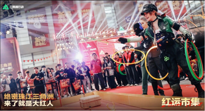 既然都“深度联动”了,那只有灯光秀肯定是不够的啊,官方更是举办了《三角洲行动》红运市集活动供玩家前往,这次的红运市集为玩家们准备了诸多活动,像是“圈住好彩头”官方把红货放在地上让玩家套圈,瞬间有了一种小时候过年逛庙会的感觉。